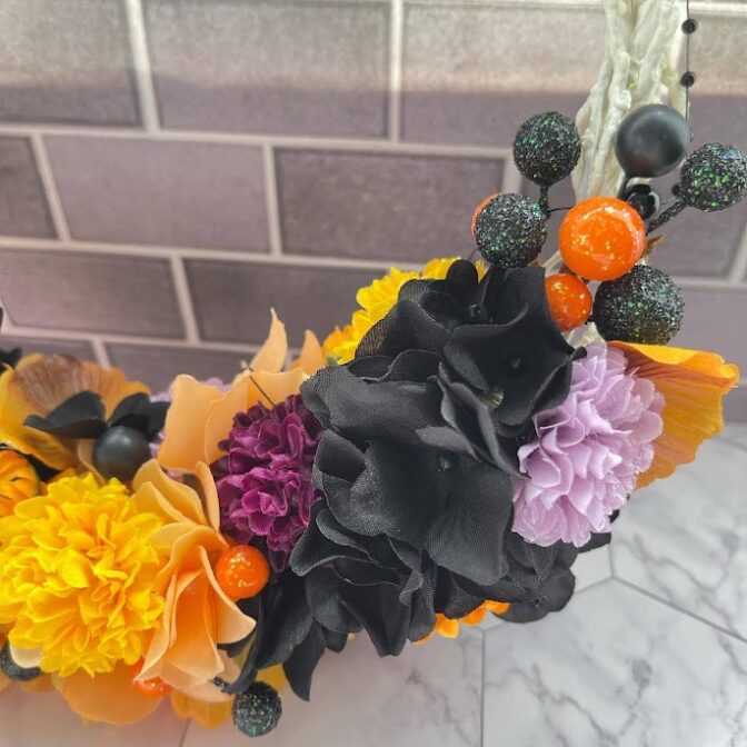 リース部分を含めて全てアーティフィシャルフラワーです。